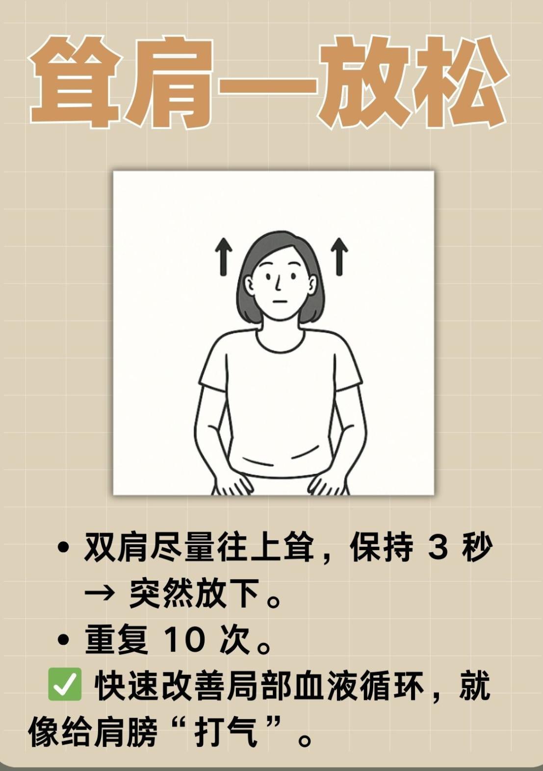 这套拉伸操不用器械,坐在工位上就能做,重点是放松紧张的颈肩肌肉,改善颈椎血液循环,快速缓解头晕手麻。