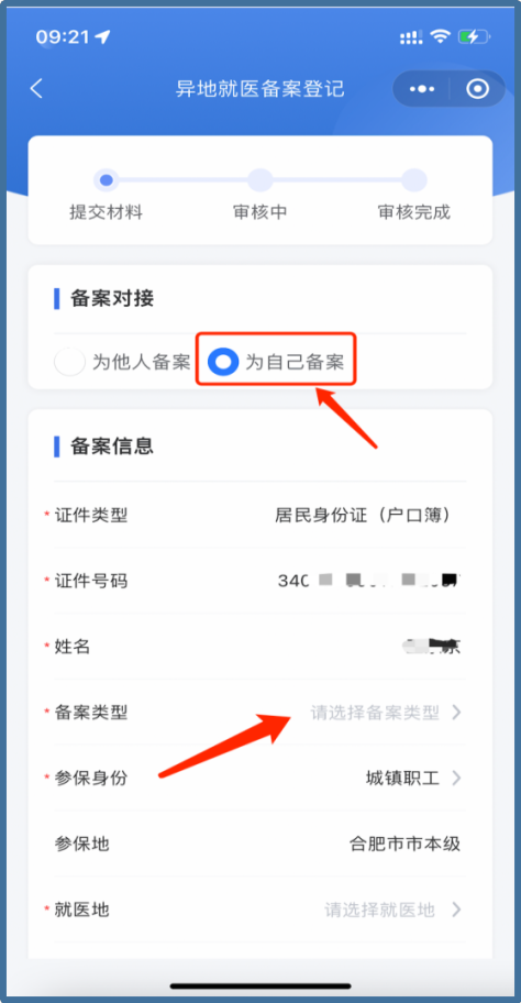 第三步:在界面可选择【为自己备案】或【为他人备案】。